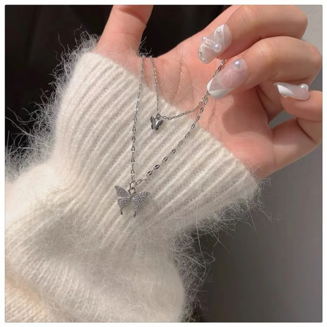 🦋 “Butterfly Kisses – Sparkly Double Chain Necklace”