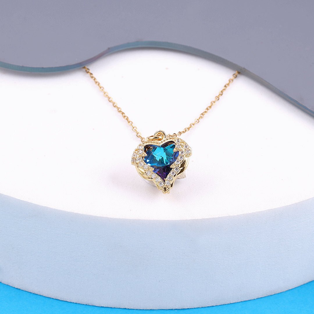 Channel your inner Rose (but skip the iceberg drama) with our Heart of Bling necklace! This stunning pendant features a dazzling deep blue heart-shaped zircon crystal, surrounded by a halo of sparkling stones for maximum glam. Hanging gracefully on a sleek gold-tone chain, it captures light — and attention — with every move. Whether you’re headed to a dreamy dinner date, a wedding, or a glam night out, this necklace is your go-to for timeless romance with a modern drip. Inspired by iconic movie elegance but totally wearable IRL, it’s the bling your jewelry box was missing. ✨
