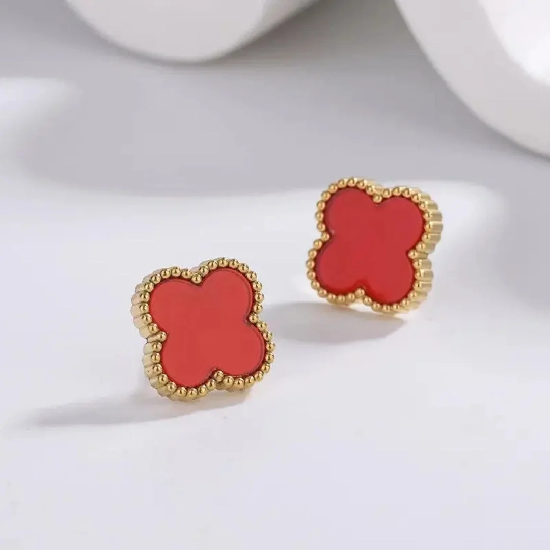 Add a splash of bold to your daily fits with our Red-y to Slay stud earrings! These vibrant red clover studs, bordered in golden beaded detailing, are the perfect combo of classic charm and youthful energy.