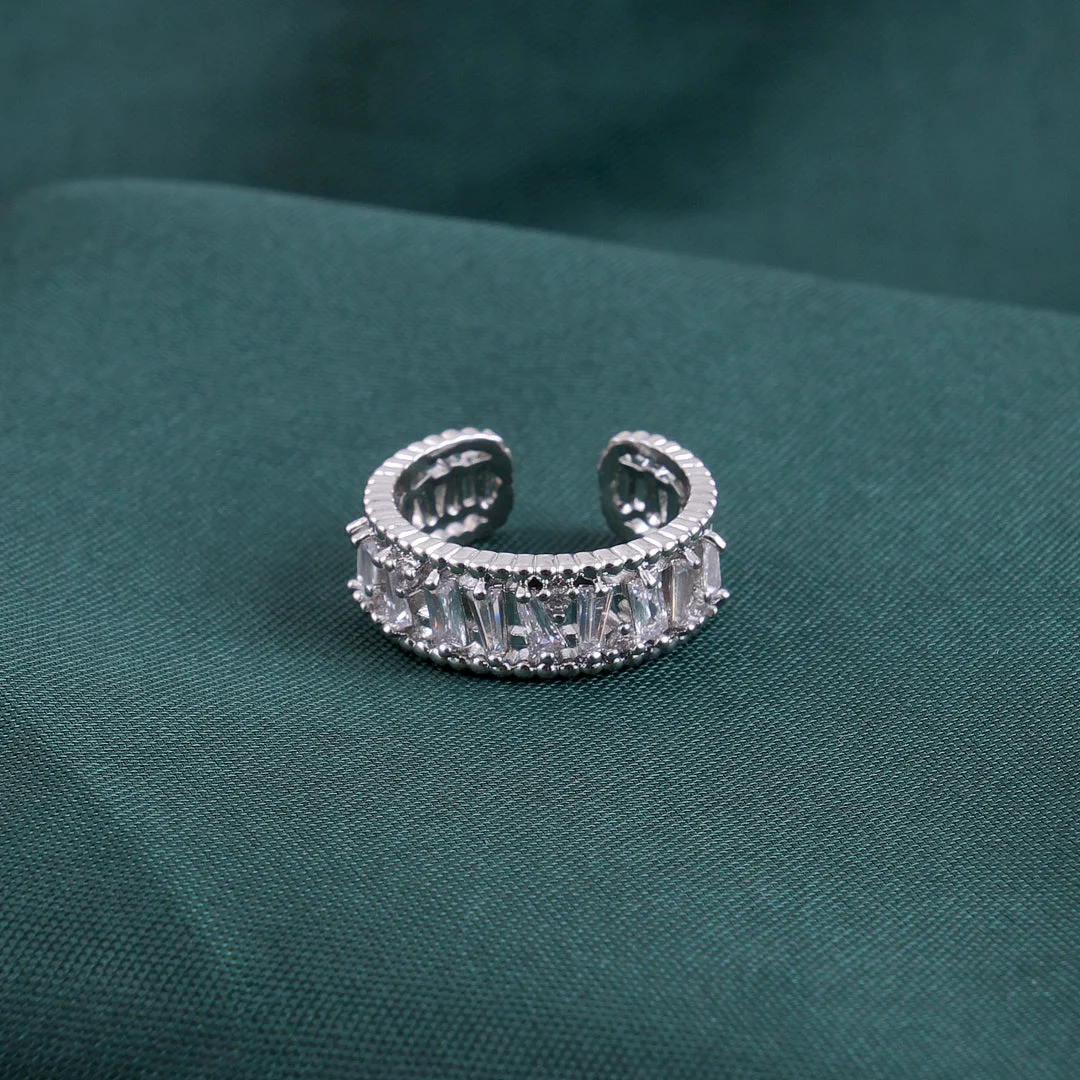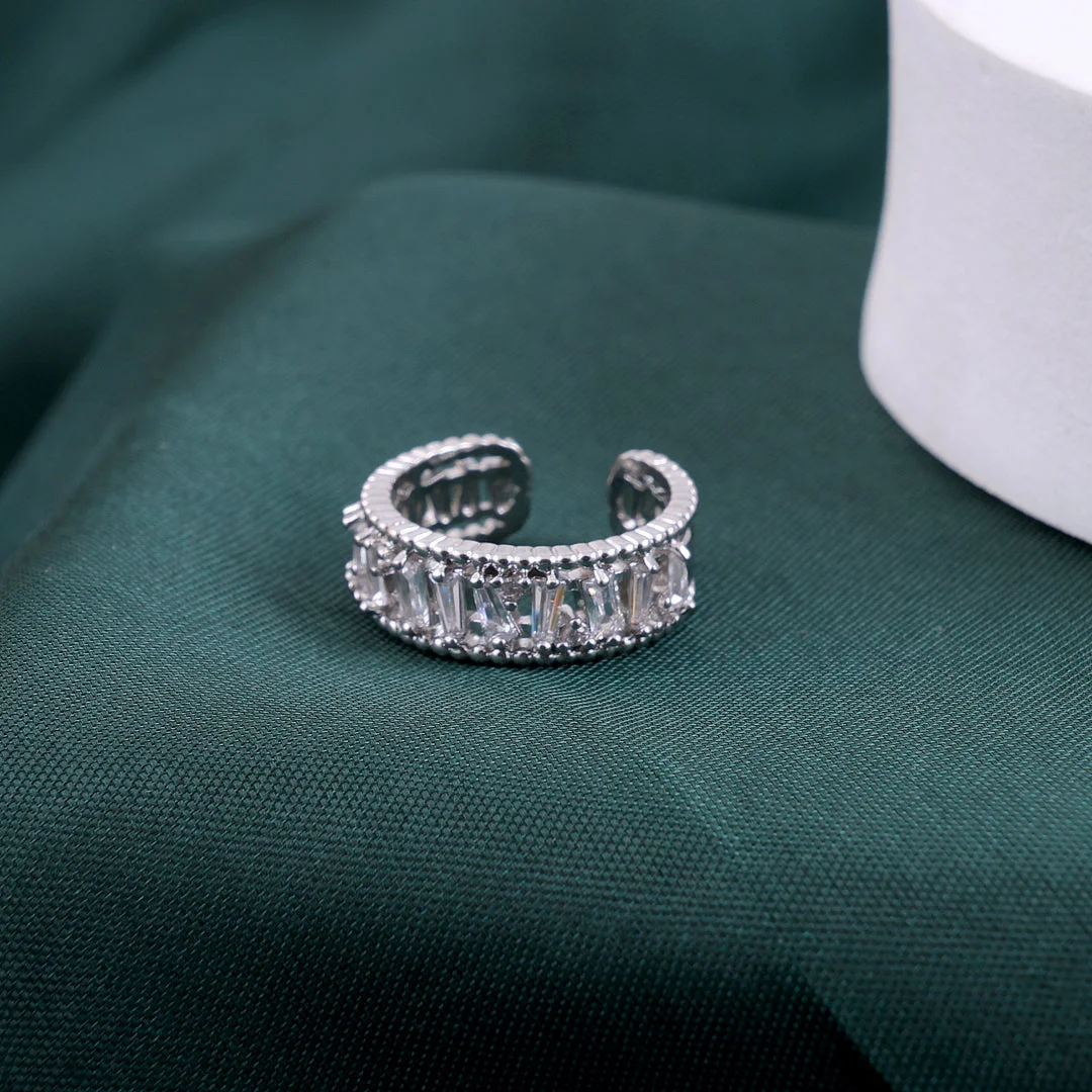 Meet The Bling Bandit — the ring that proves you don’t need to shout to shine. With sleek baguette-cut zirconia stones set in a clean silver band, this adjustable beauty delivers just the right amount of sparkle for your everyday slay.