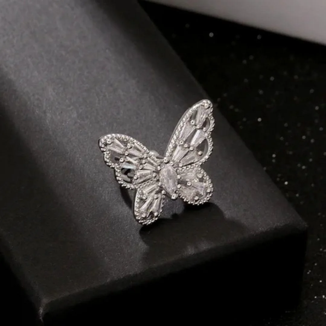 Introducing The Blingfly Effect Ring – where all your fashion statements take flight. This dazzling beauty features a full butterfly design, encrusted with radiant baguette-cut stones that scream glam and confidence. The sparkle is real, the attitude is bossy, and the compliments? Oh, they’ll swarm in. Perfect for queens who don’t do “basic”, this ring is your go-to for parties, selfies, or just when you’re feeling ✨extra✨. Whether you pair it with power fits or flowy dresses, it’ll always bring that butterfly magic. It’s not just a ring – it’s a vibe. 💍